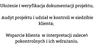 Prześledzimy zadania realizowane w ramach projektu Zweryfikujemy zgodność działań promocyjnych z wytycznymi lub Przeprowadzimy działania kontrolne dowolnego obszaru Twojego projektu, zgodnie z Twoimi potrzebami.